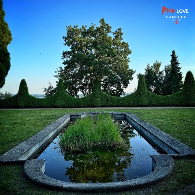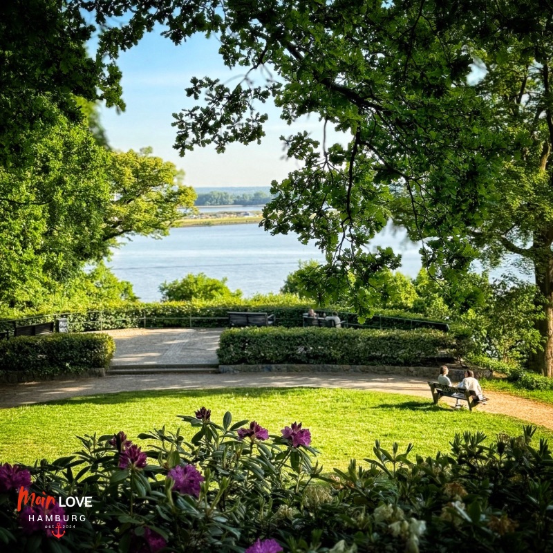 Vom Elbstrand in Blankenese, wo das Schiffswrack Uwe liegt, gehst du die Treppen hoch und kommst zum hübschen und sehr ruhiggelegenen Römischen Garten mit Blick auf die Insel Neßsand.
