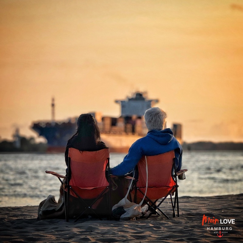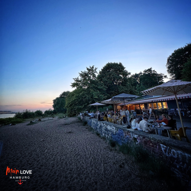 Man holt sich ein kühles Bier, eine Currywurst mit Pommes oder – je nach Stimmung – auch ein Glas Champagner, nimmt sich einen Stuhl und lässt sich nieder, direkt am Strand. Die Kinder spielen im Sand, Spaziergänger bleiben stehen, Radfahrer legen eine kleine Pause ein, Jogger verschnaufen – und alle teilen diesen Moment, in dem der Blick hinaus auf die Elbe den Alltag vergessen lässt.