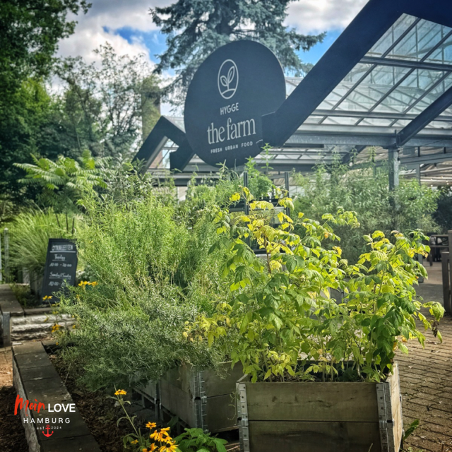 Und dann gibt es noch das HYGGE the Farm in Klein Flottbek – für mich ein Lieblingsort der ganz eigenen Art. Eine alte Gärtnerei wurde hier in ein Restaurant verwandelt, ohne ihren ursprünglichen Charme zu verlieren. Zwischen zwei Gewächshäusern wird tatsächlich Gemüse angebaut, das man nicht nur sehen, sondern auch kaufen und genießen kann. Freitags bis sonntags kann man hier frühstücken, lunchen, Kaffee und Kuchen genießen – oder einfach draußen auf der Terrasse sitzen und die besondere Atmosphäre auf sich wirken lassen. Ich komme besonders gern freitags mittags her, treffe Freunde, esse einen frischen Salat und genieße die entspannte Stimmung.